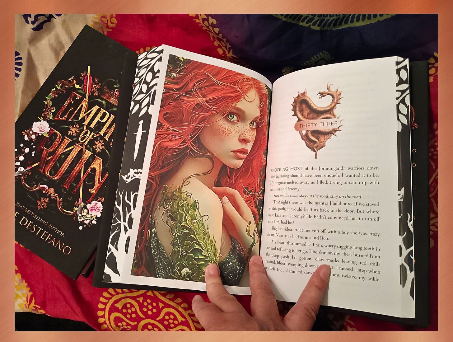 Merrie Destefano has some beautiful forced edges on her Empire of Ruin hardcovers - this outside cover was created by the same designer who did my Dragon Diaries omnibus, Mulan Jiang. This is an illustrated book and the interiors are just gorgeous - and Merrie created many variations. This is the one with the forced edges.